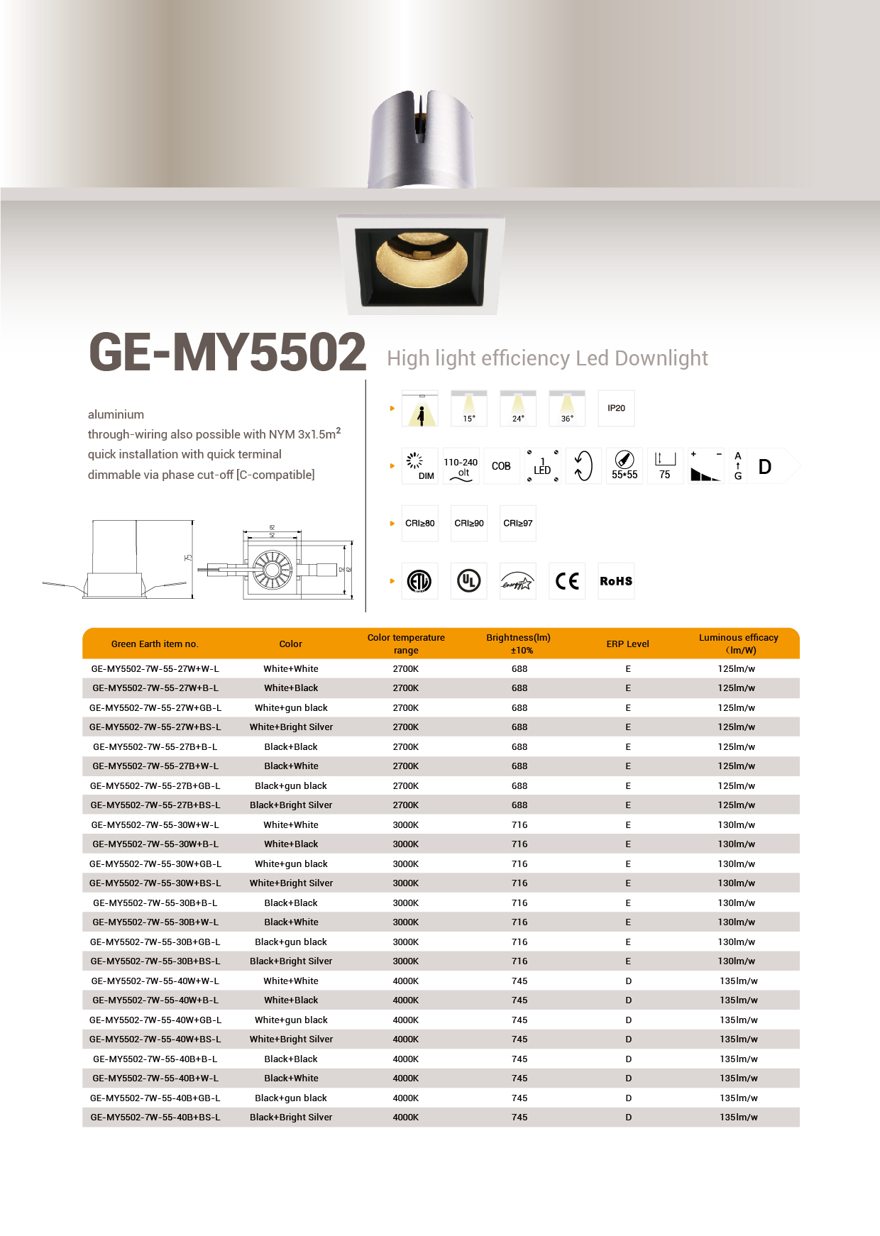 【Jacob Series】GE-MY5502-7W-55-L