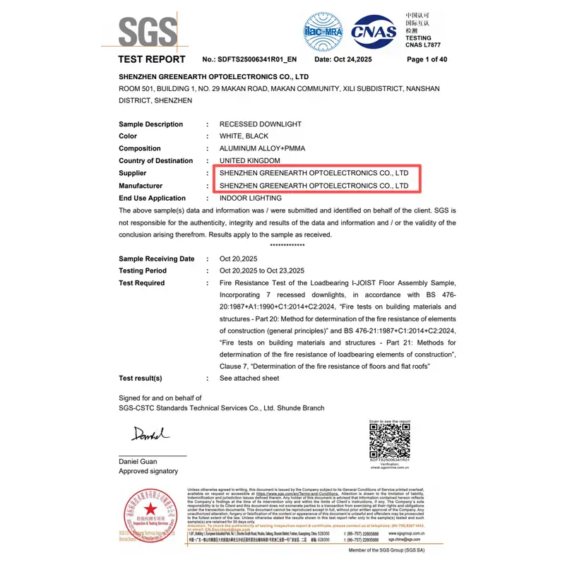 Our fire-rated models are tested to 60-90 minutes fire resistance, SGS certified, ensuring the fixture helps maintain ceiling integrity and slows fire spread.